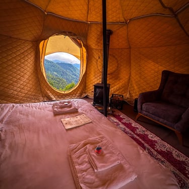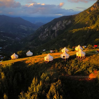 ubytovanie v jurtovom štýle v gruzínskych horách pri Tago